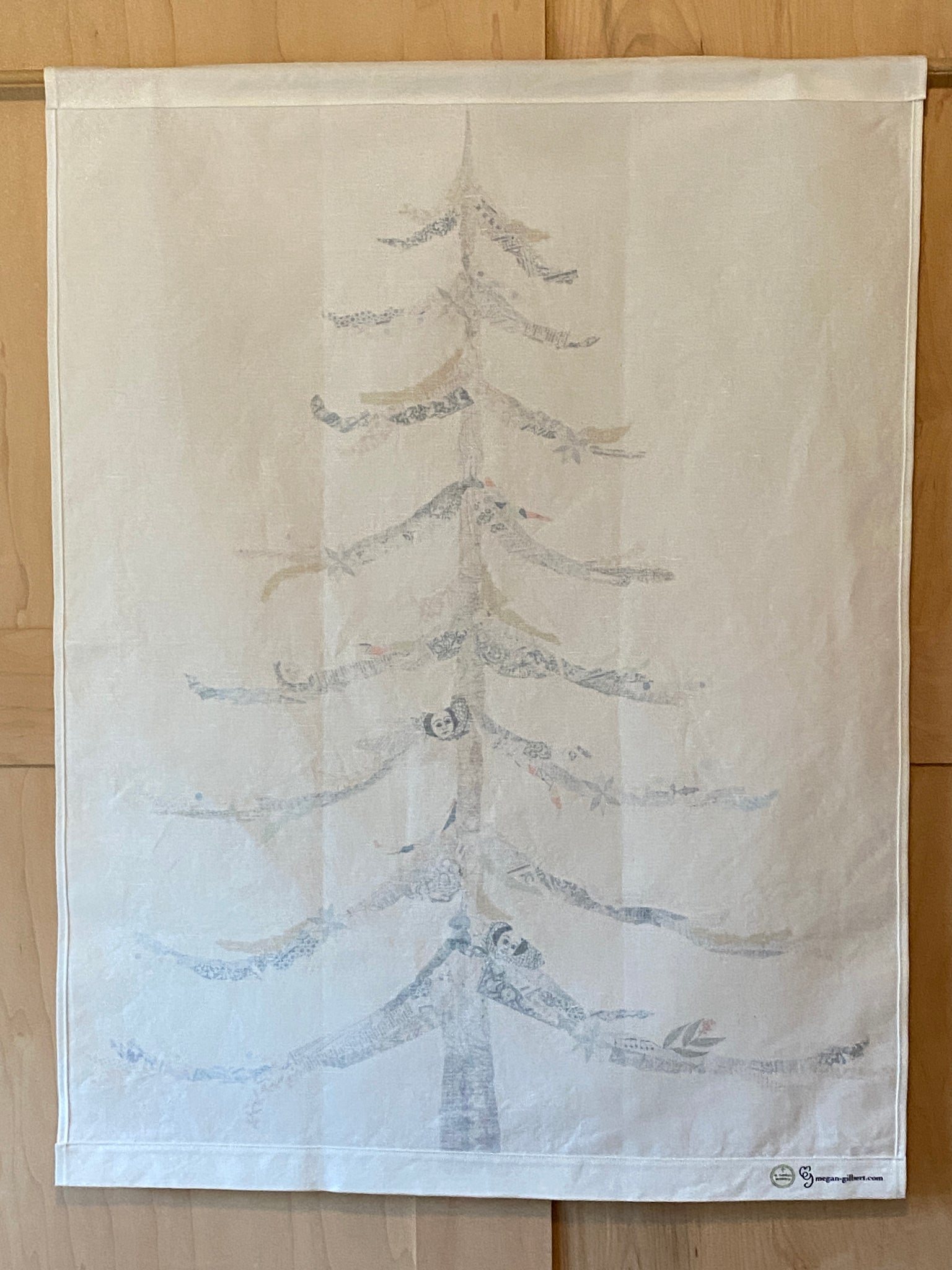 Wall hanging inspired by the "Tree of Jesse" Advent curriculum, featuring beautiful paper collage artwork by Kh. Elizabeth Gilbert. It is a perfect companion to a 40-pocket Advent Calendar that holds ornaments for the Nativity Fast, like those that come with the "Welcoming the Christ Child" Advent readings. Wall hanging comes with 40 gold calabash pins to hang ornaments (ornaments not included). There is a 1” sheath at the top to insert a dowel or thin curtain rod to hang it on the wall, and also a sheath at the bottom to insert a dowel for weight to help it lay straight when the ornaments are attached. The tree also makes a beautiful winter decoration for your home & folds nicely for storage!