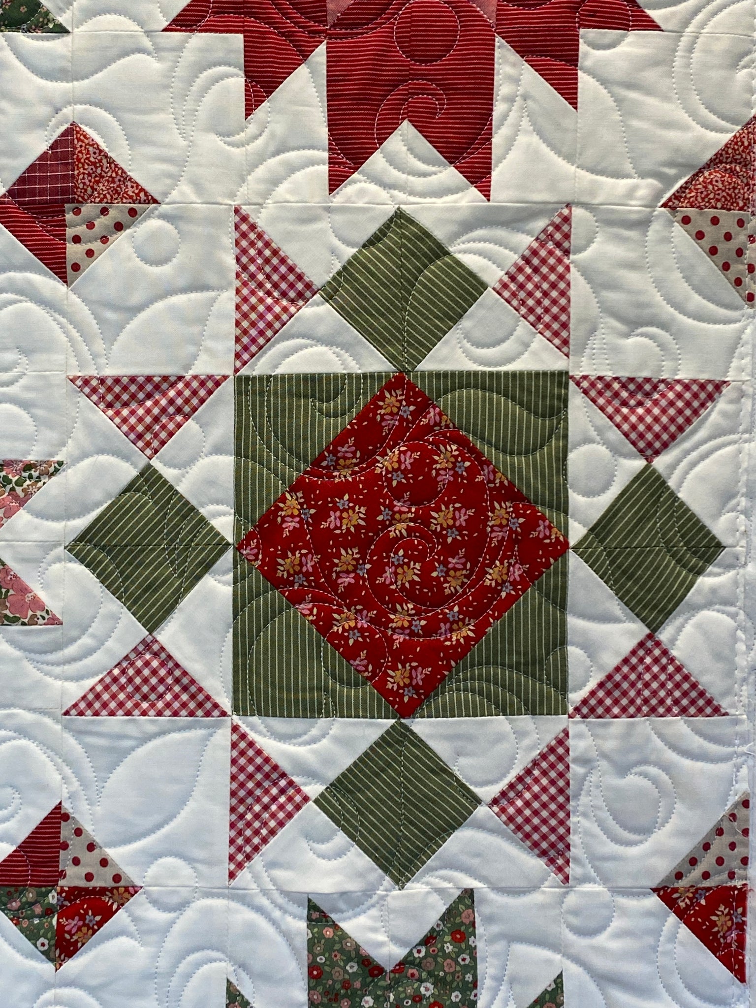 Thank you for trusting us with your quilt! It is finished and ready to go home. We can't wait for you to see the quilted look!